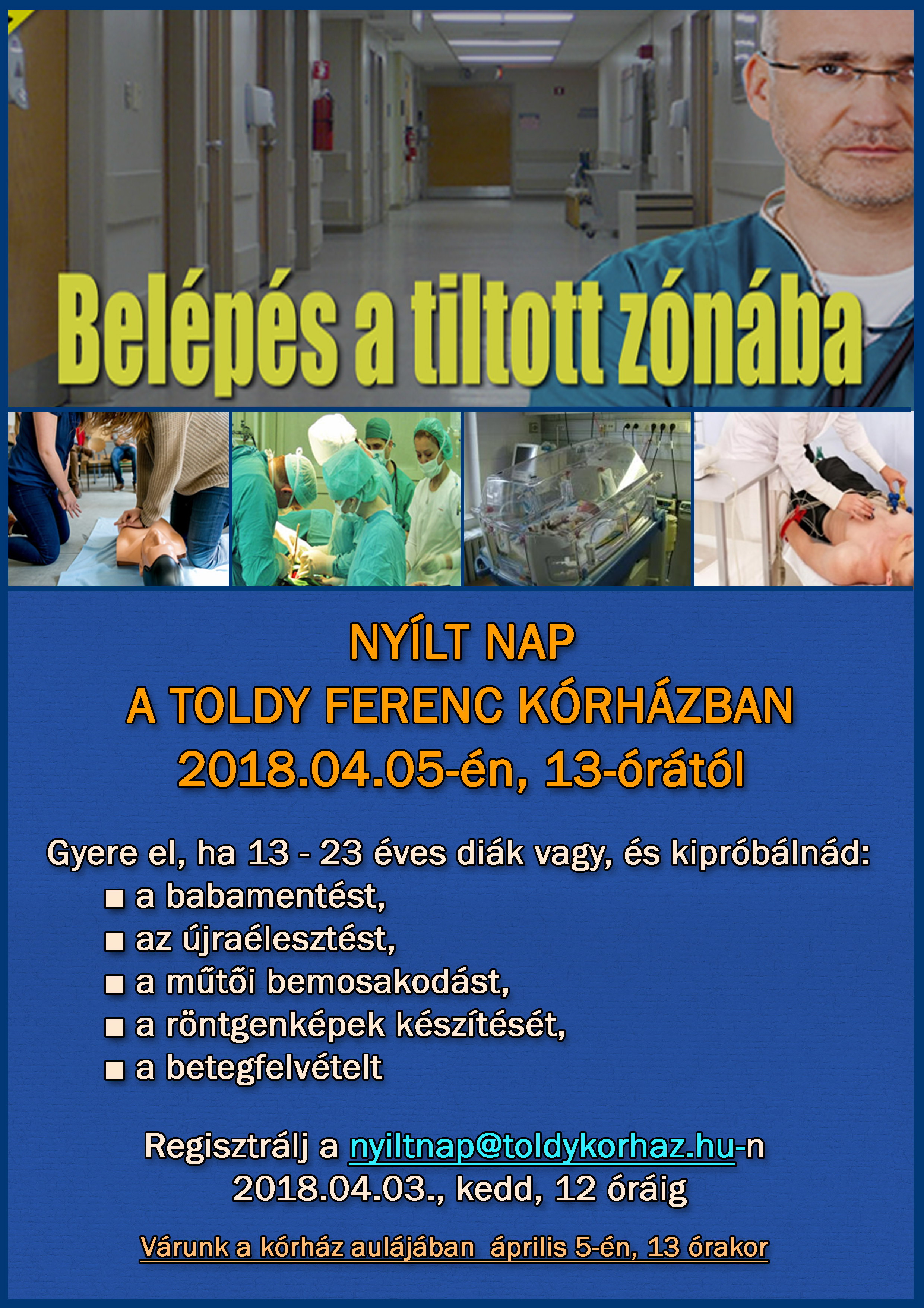 A programon történő részvétel előzetes regisztrációhoz kötött: nyiltnap@toldykorhaz.hu email címen